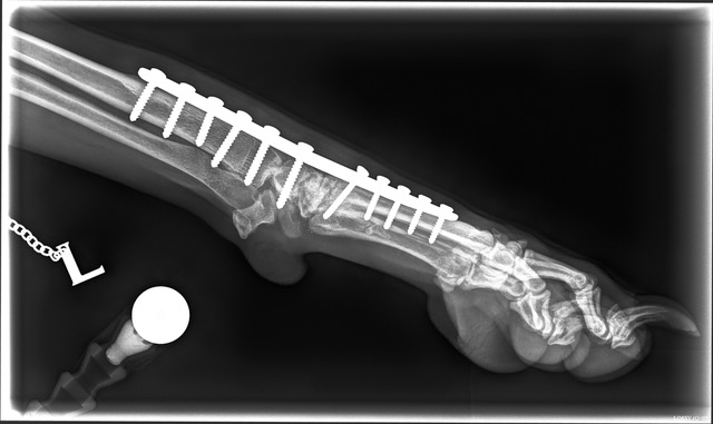 The photos below show the metalwork in her leg but she lives a perfectly normal life and is back to her happy, outgoing self, which is the best possible outcome for our fabulous Foxy.