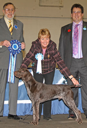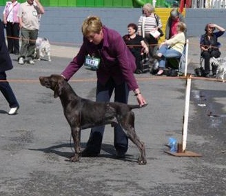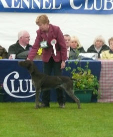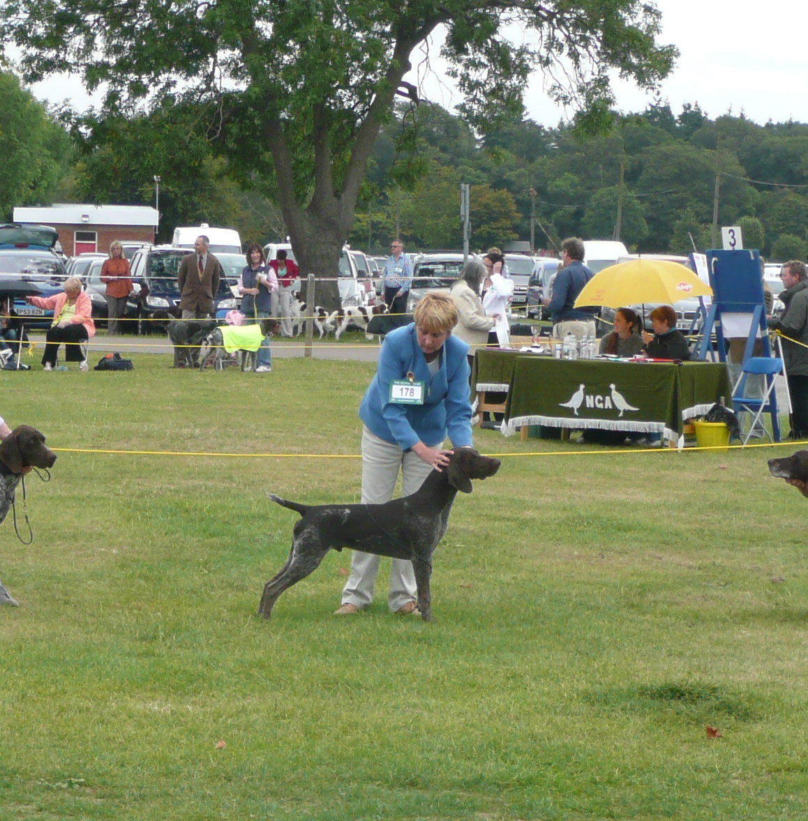 LEEDS CH SHOW - An ideal day for dog showing, cloudy with the sun peeping out occasionally. It was also an 'ideal day' for Lily, as she won Limit bitch under Mrs Jane Eyeington (Meadowdale ESS and GSP's).
