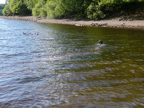 Below is Logan with a natural distraction in the water, and spot Greta behind Allan, waiting patiently for her turn.