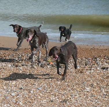The judge today was Mr Keith Groom and he awarded Logan his 14th CC and B.O.B. and he was then shortlisted in the group under Mrs Sandra Marshall. The following day we went off to Sandwich Beach which the dogs thoroughly enjoyed and Logan forgot about his 'desires' for a while! It was then back to picking up again the next day so Logan really is a versatile gundog.