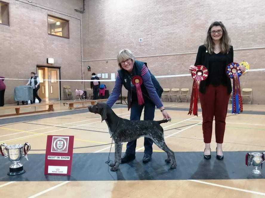 2019 - Foxy has continued to delight us with her lovely personality and in her first year of showing, she has continued her winning ways as she approaches the end of her time in Puppy and Junior classes. Her accolades in 2019 have been: **Junior Warrant **2 BPIB at Championship shows **Best puppy in show- Central & Southern GSP Society **Puppy working test winner ***Best in Show at Wigan DCS and Best Puppy in Show at St Helens DCS