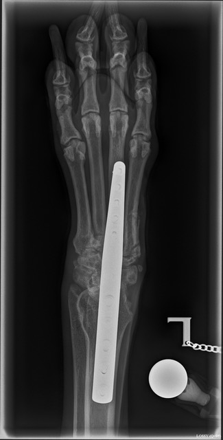 The photos below show the metalwork in her leg but she lives a perfectly normal life and is back to her happy, outgoing self, which is the best possible outcome for our fabulous Foxy.