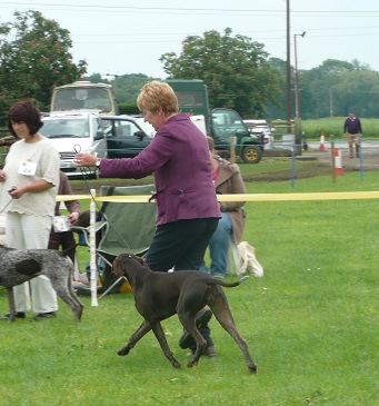 LEEDS CH SHOW - An ideal day for dog showing, cloudy with the sun peeping out occasionally. It was also an 'ideal day' for Lily, as she won Limit bitch under Mrs Jane Eyeington (Meadowdale ESS and GSP's).