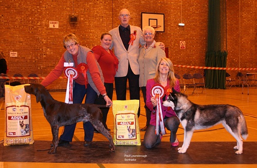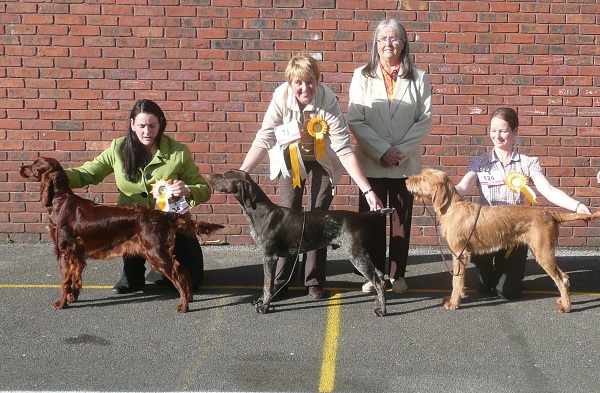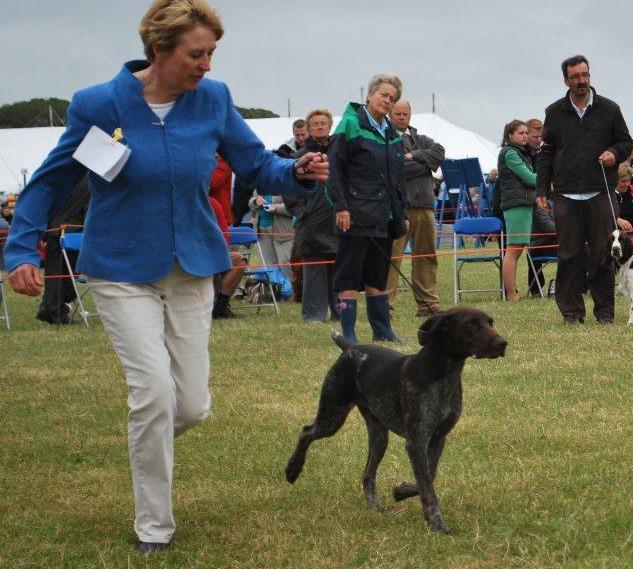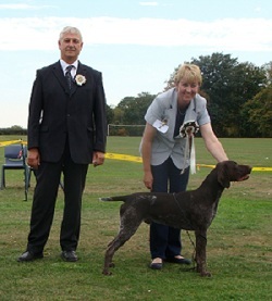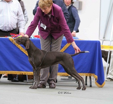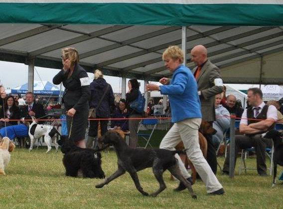 GSPC CHAMPIONSHIP SHOW - The 50th anniversary of the prestigious GSPC Champ show was held at Holme-on-Spalding Moor, Yorks and what an amazing and memorable day it turned out to be! It was a well run, informal day and even the weather was accommodating! Firstly, Logan won Junior dog and Lily won Mid Limit bitch which was a lovely start. The dogs and bitches were judged simultaneously by breed specialist judges, Mrs Julie Squire (Taftazini) doing the dogs and Mrs Pat Ideson (Heathermark) doing the bitches