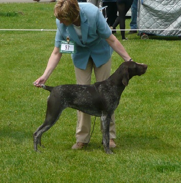 BOURNEMOUTH CH SHOW - Logan is currently the GSP half way leader in the 'Top Dog' competition, we are so proud of him although he had other things on his mind at Bournemouth show, namely the female of the species! There were quite a few bitches in season and he got himself into a bit of a lather! No matter, he scooped his 12th CC under Mrs Linda Taylor (Wansleydale English Setters) who was awarding CC's in our breed for the first time. Logan was also 3rd in the Open Stakes. Poor Greta stayed at home, nursing a cut pad but hopefully she'll be firing on all cylinders by Welsh Kennel Club.