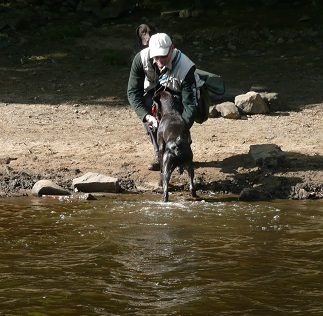 Below is Logan with a natural distraction in the water, and spot Greta behind Allan, waiting patiently for her turn.